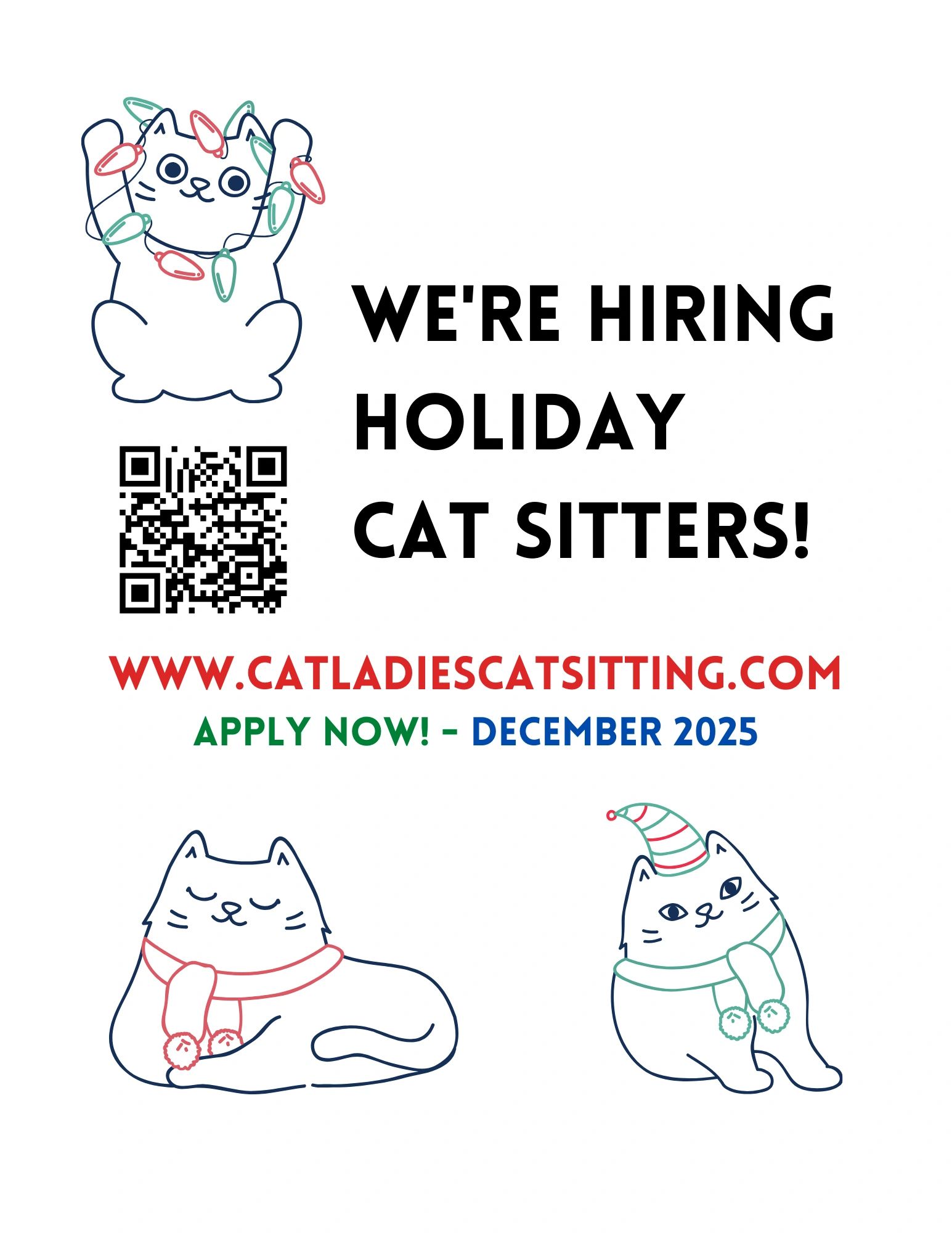 If interested, please email catladiescatsitting@gmail.com with your resume, and a brief explanation of why you'd like to work for us!